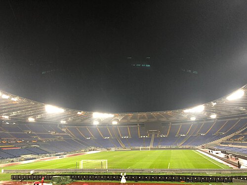 18:55 Uhr, Anstoß in Rom. Pyro im Block, Stimmung geil. Vor uns Polizei und Ordner... egal! Forza SGE! Die erste Spielhälfte blieb sportlich aber eher Durchschnittlich. In der Halbzeitpause holten wir unsere abgezockten und nassgeregneten Schals wieder. Jetzt gings aufwärts! Anpfiff zweite Hälfte, die Partie geriet lebhafter... im imposanten, aber leeren Stadion von Rom kam auch Bewegung in die Ränge, als rund 60 Lazio-Hools unbehindert über den umlaufenden Balkon an unseren 21er Block traten und unaufgefordert mit Böllern warfen. Ein paar eigene Ultras reagierten ebenfalls mit Böllern. Dann fiel das 1:0 für Rom, Hämisches Gegröle von Nebenan, ein paar Bekloppte die am Zaun rütteln und Carabinieri, die nicht an Deeskalation dachten. Dann wurde es wild auf den Rängen, einige Eintracht-Anhänger durchbrachen ein Tor zum Innenraum und gingen auf die Polizei los, wurden wieder zurückgedrängt und reagierten mit fliegenden Bengalos und noch mehr Böllern. Als von den oberen Rängen noch Kritik an den eigenen Krawallos aufkam, wurden die auch noch auf die eigenen Fans garstig und mussten vom Capo noch zurückgepfiffen werden. Die Cops zogen so lange Verstärkung vor unsere Blöcke. Dann fiel der Ausgleich, was im Trubel beinahe etwas unterging, und wenige Minuten später sogar noch die Führung. Die Stimmung blieb aber aufgeheizt. Unsere Eintracht brachte den Sieg souverän über die Zeit, was die Gemüter etwas abkühlen lies.