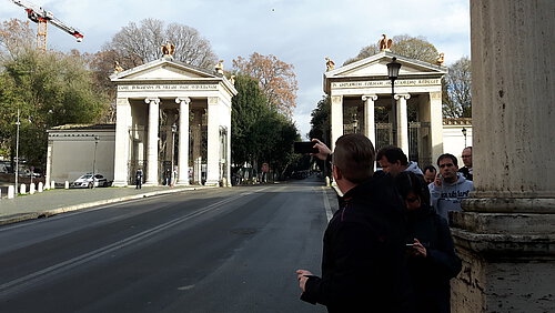 Also rein in die ewige Stadt und irgendwann waren wir am Park Villa Borghese, dem angepeilten Treffpunkt der Fanbetreuung angekommen. Dort haben wir den Bus abgestellt und haben uns an der Piazza del Popolo erstmal bis Nachmittags aufgehalten und versucht irgendwie an Bier zu kommen, bis wir Richtung Stadion aufbrachen.
