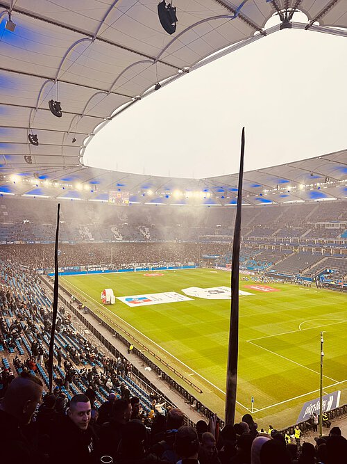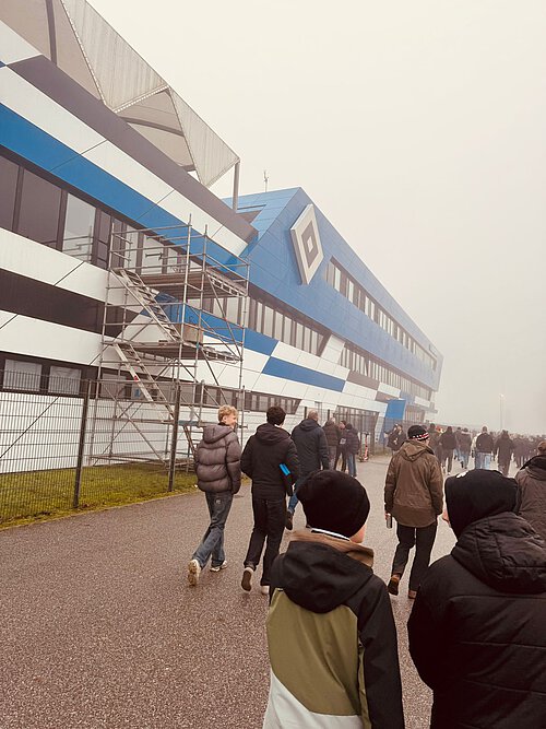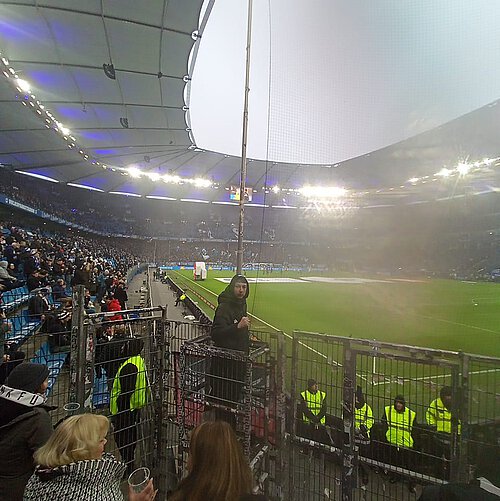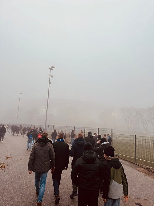 Während die Kids sich zum Billard spielen in der Jugendherberge getroffen haben, unternahmen andere einen Spaziergang durch den alten Elbtunnel. Am Nachmittag sammelte sich die Gruppe und folgte den Fanströmen mit der S-Bahn Richtung Stadion.
